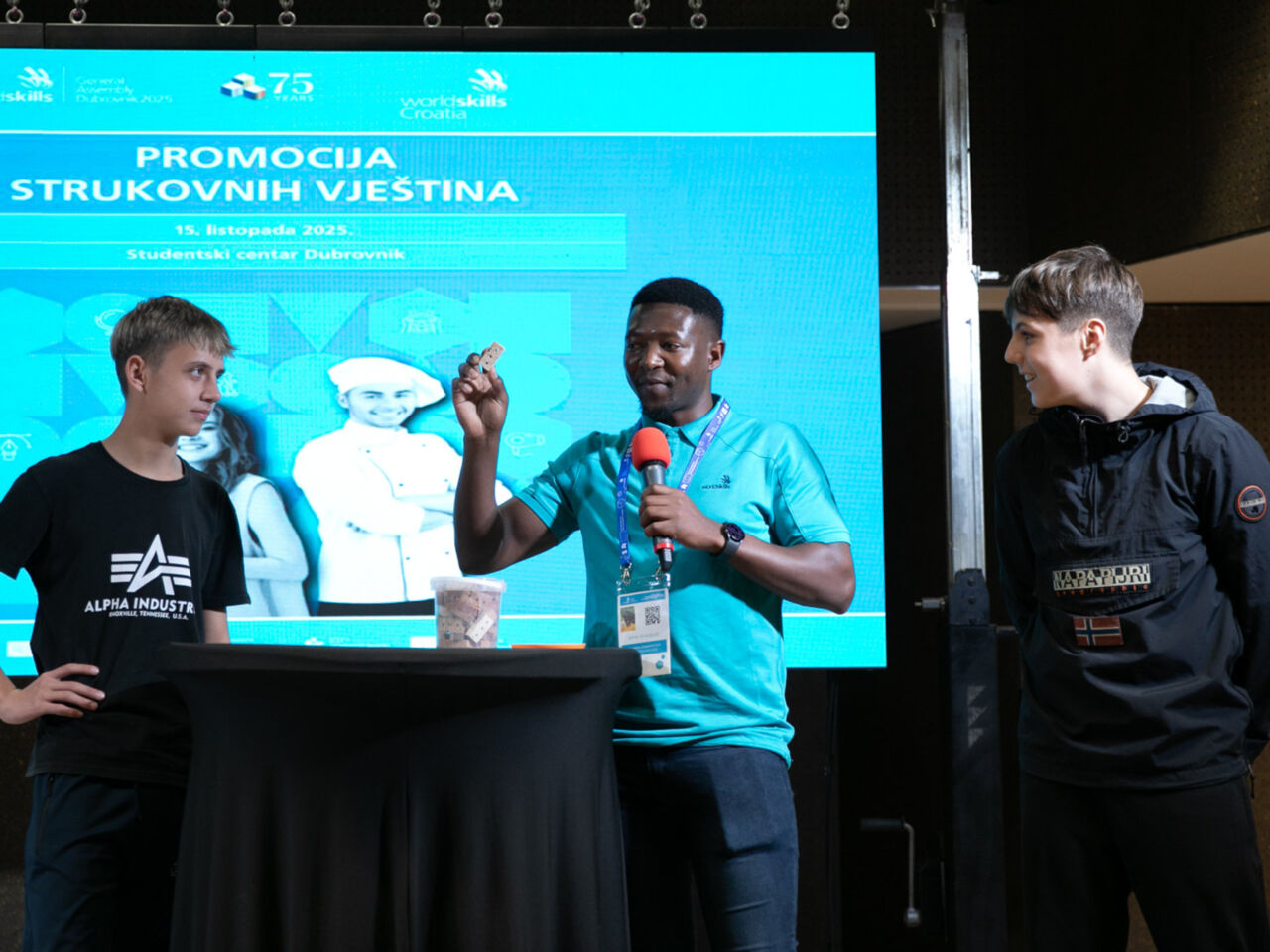 Between each of the WorldSkills Champions Trust interventions, there were different fun activations – such as quizzes, video projections, and challenges – leaving a lasting impression on the 600 students, parents, and educators of Dubrovnik-Neretva County who attended the event.