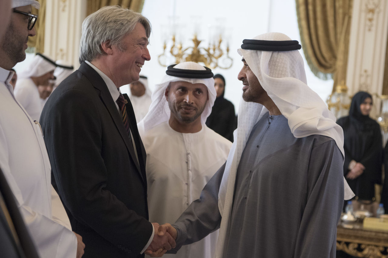 His Highness Sheikh Mohamed bin Zayed Al Nahyan, Crown Prince of Abu Dhabi, and Deputy Supreme Commander of the UAE Armed Forces, received the WorldSkills Board of Directors, the Director General of ACTVET, His Excellency Mubarak Al Shamsi, the President of EmiratesSkills, Ali Al Marzouqi, and the CEO of WorldSkills, David Hoey, at the Sea Palace in Abu Dhabi on Monday afternoon.