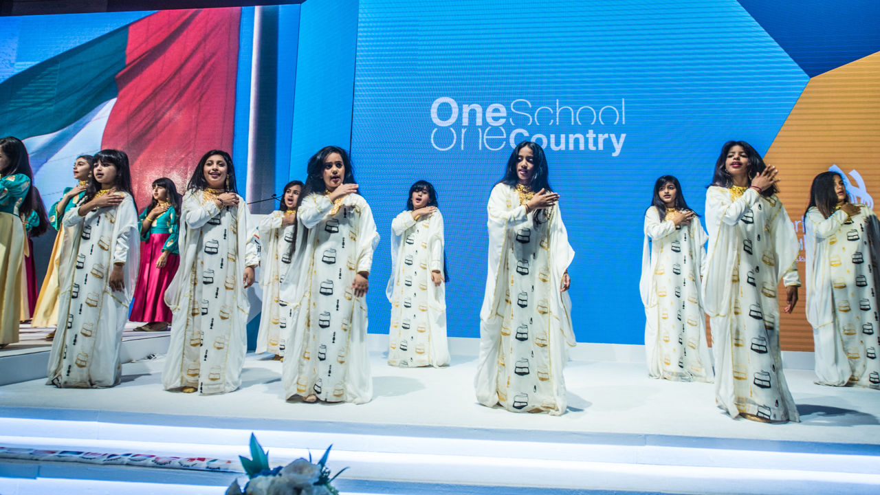 The launch of One School One Country, included an elaborate and colourful dance by more than 50 schoolgirls from the UAE. Then children and teachers from the schools took to the stage waving flags as it was announced which school would be paired with each member country.