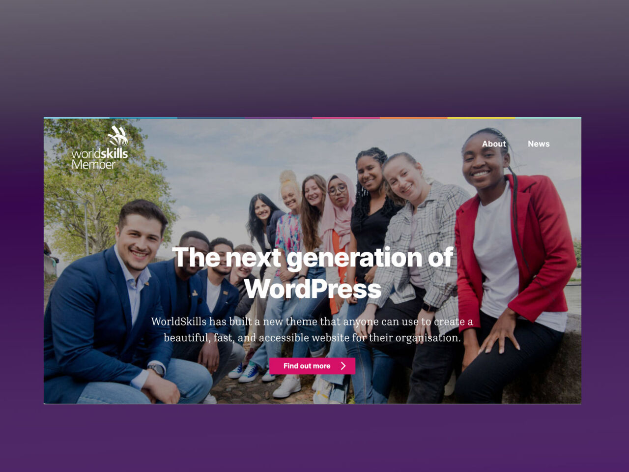 The theme takes design approaches and patterns from the WorldSkills website and packages them up so that anyone who can use WordPress can build a beautiful, fast, and accessible website for their organisation.